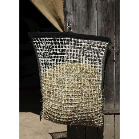 Väga praktiline ja kergesti täidetav heinavõrk tänu tugevdatud konksukinnitusele.